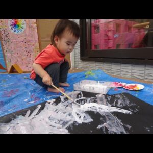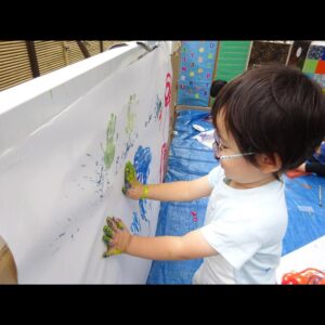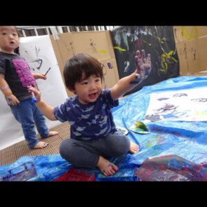 紙粘土の感触が面白いようで何度もこねる子や、逆にちょっと苦手な子は保護者の方と協力して取り組んでいました。